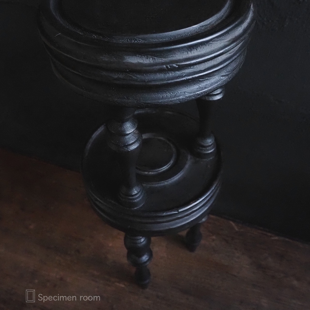 黒塗料にワックスを塗り重ね、真っ黒ではなくほんのり焦げ茶色