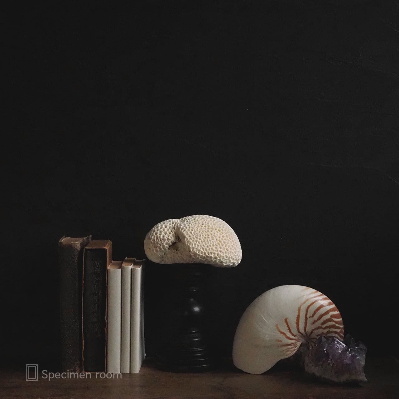 今回は人気のキクメイシ珊瑚の台座付き標本です