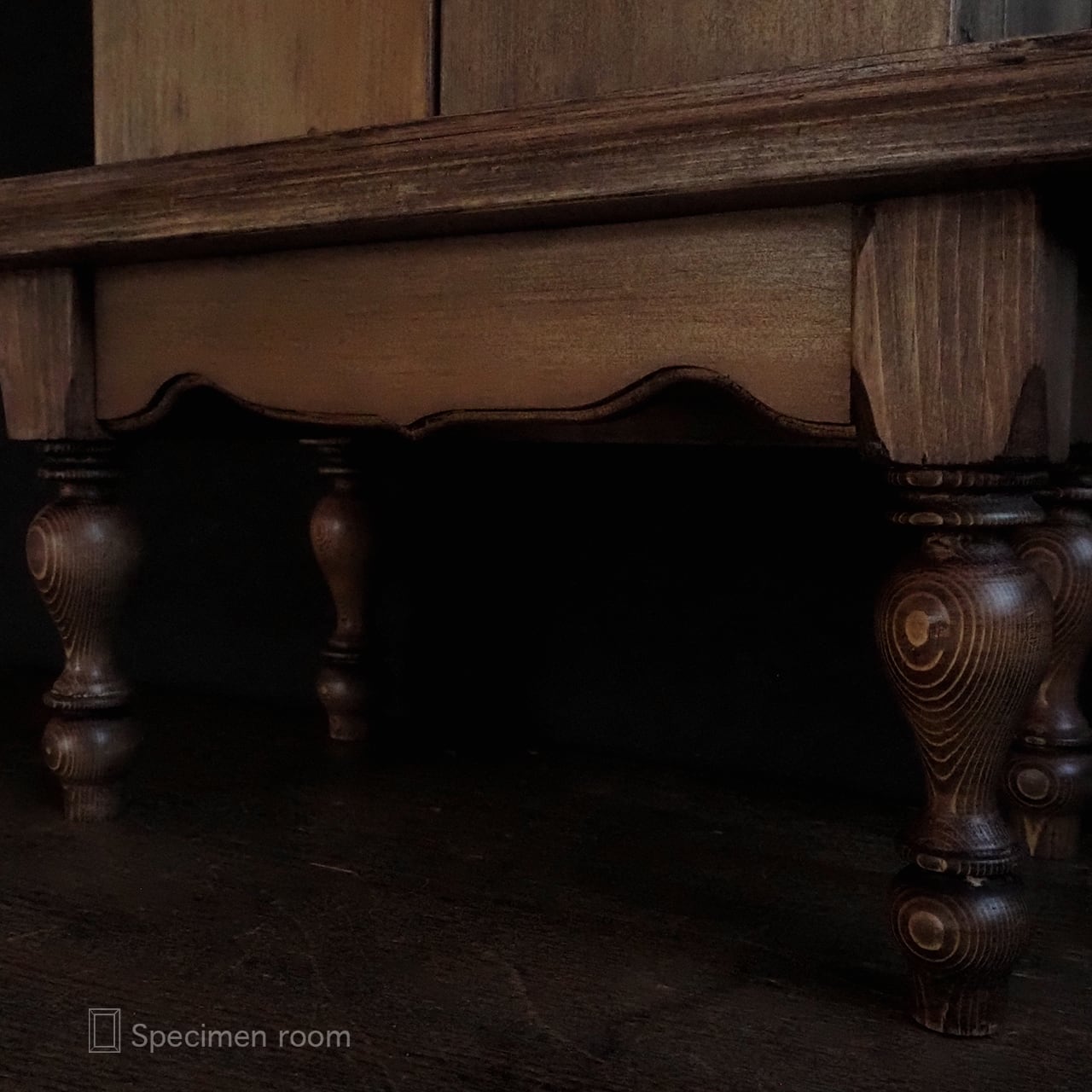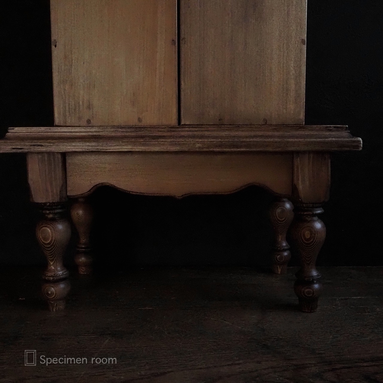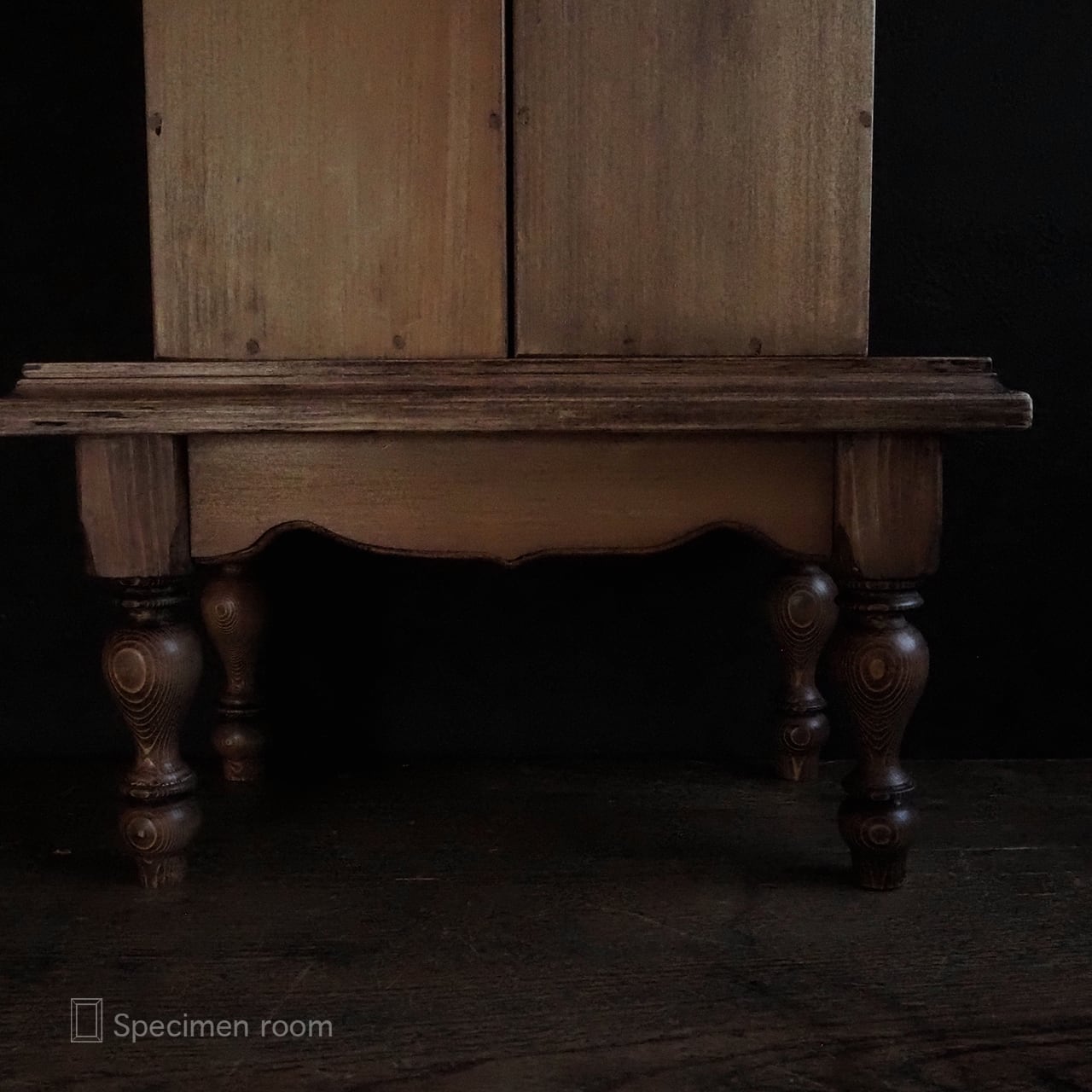 レトロな雰囲気を出す為に棚や箱には、色むらや傷加工を施していますが