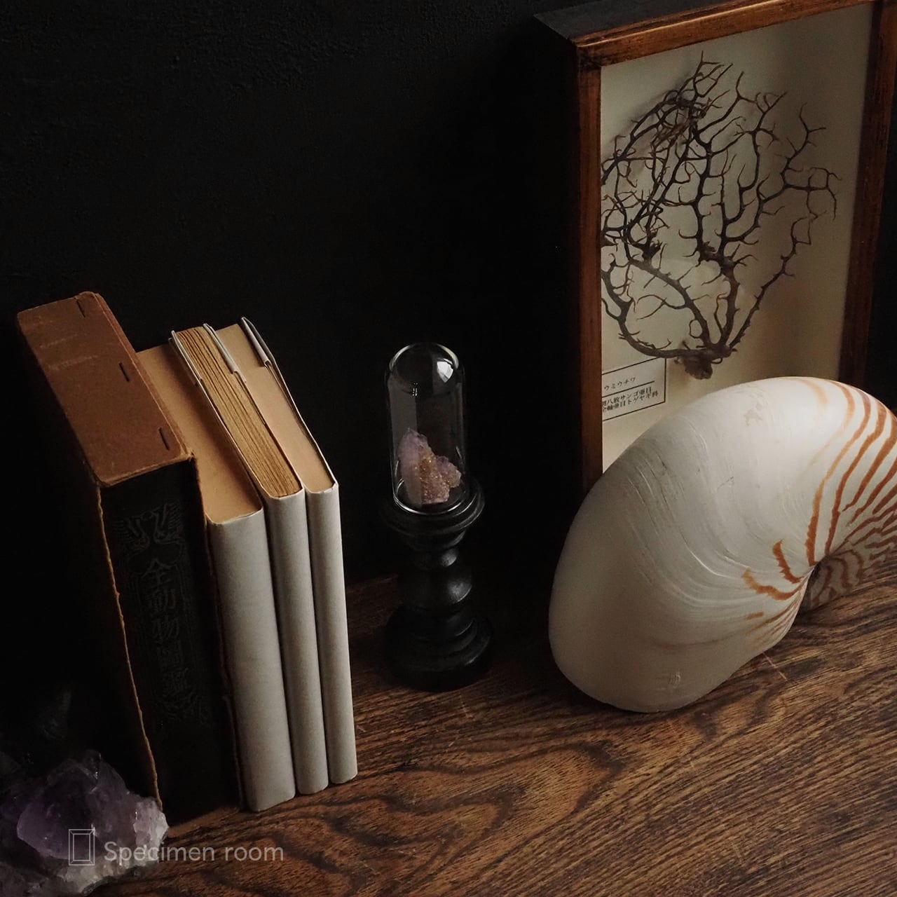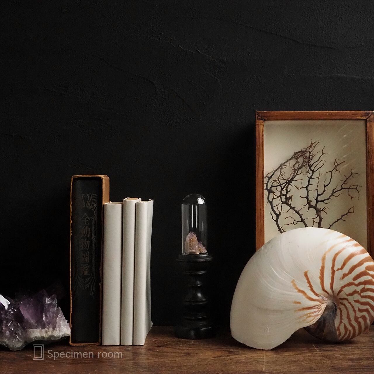 オウムガイや標本、鉱物、本等は撮影用の小物です