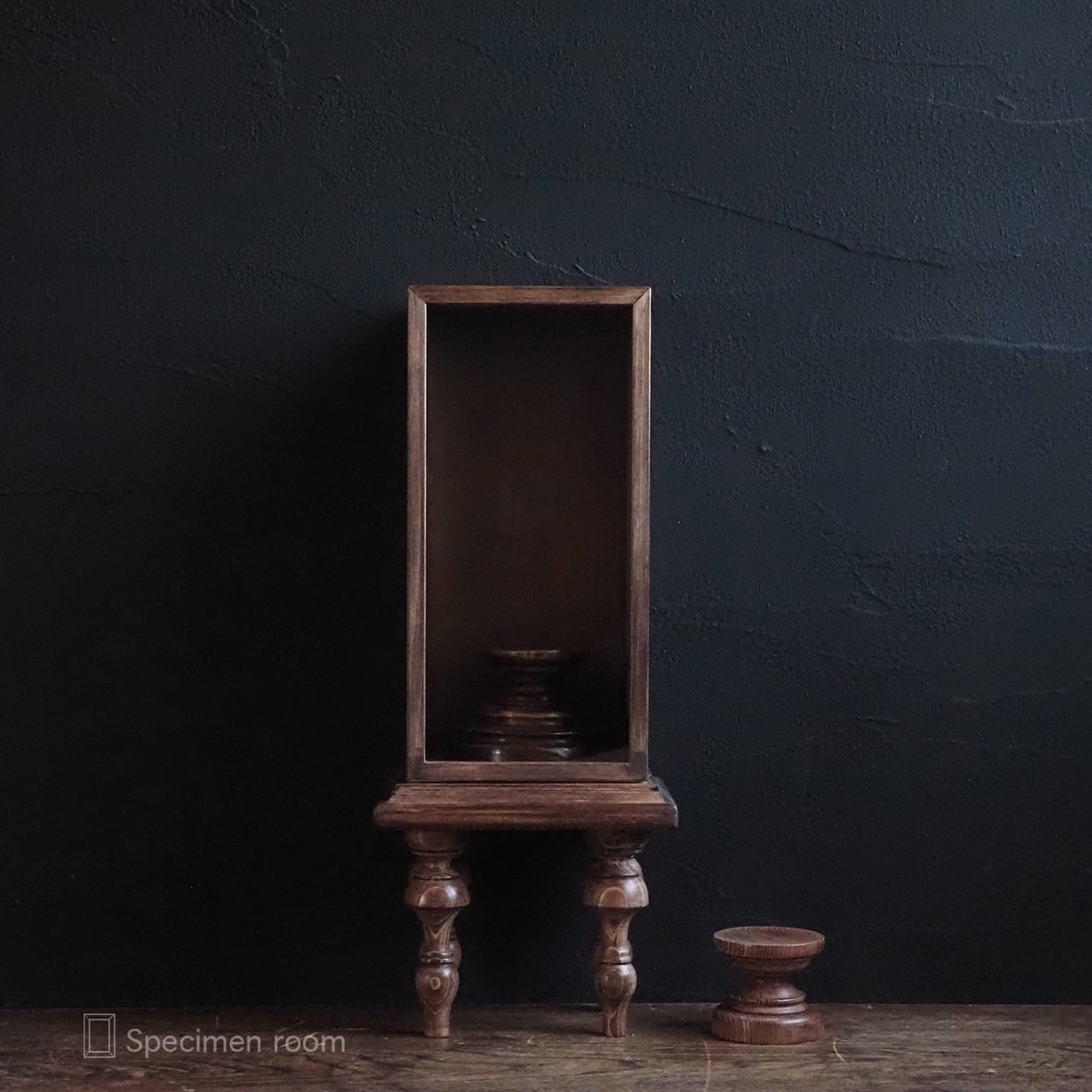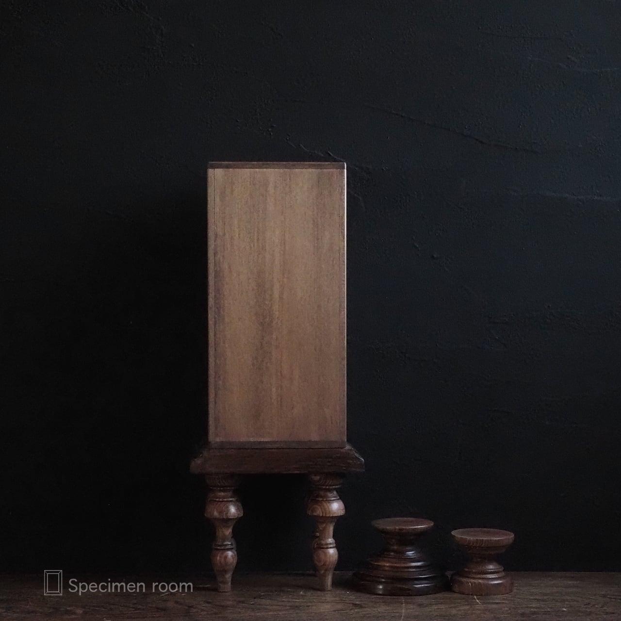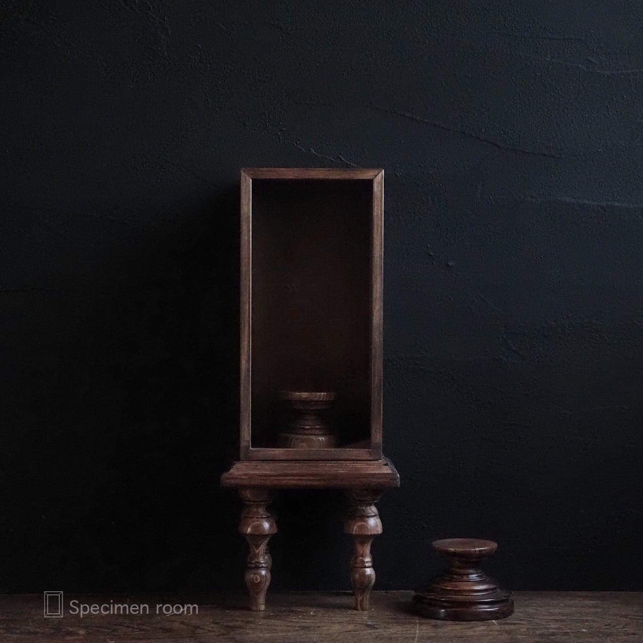 お届けするのは「4本脚付き縦長標本箱(大小の台座付き)。」のみです。