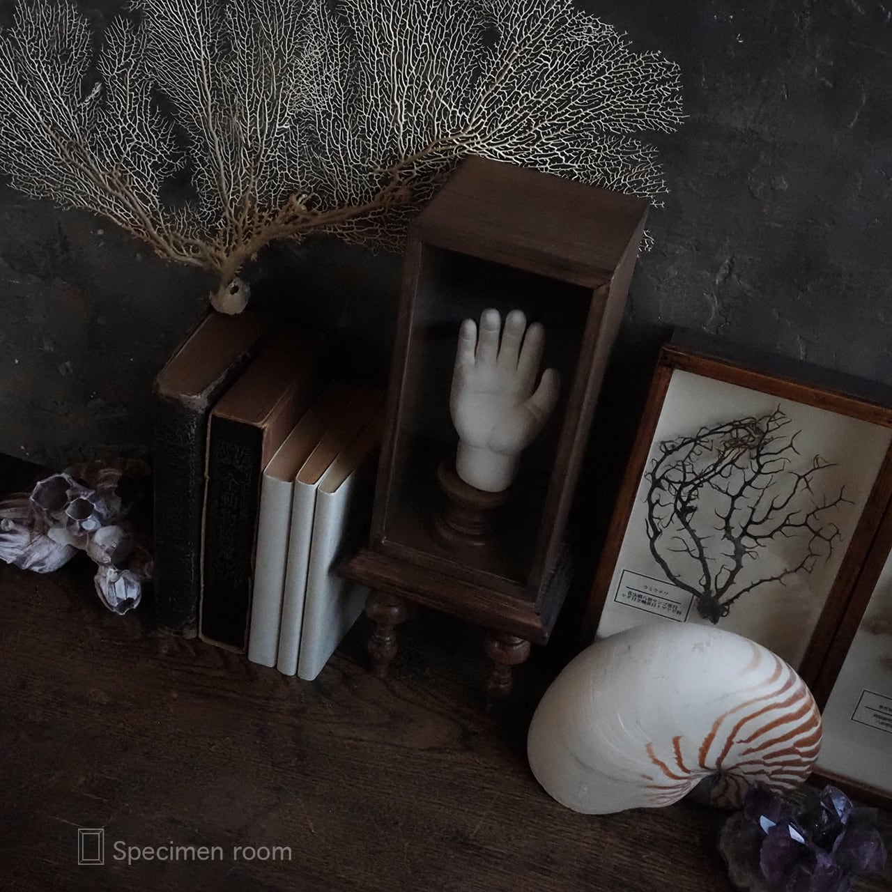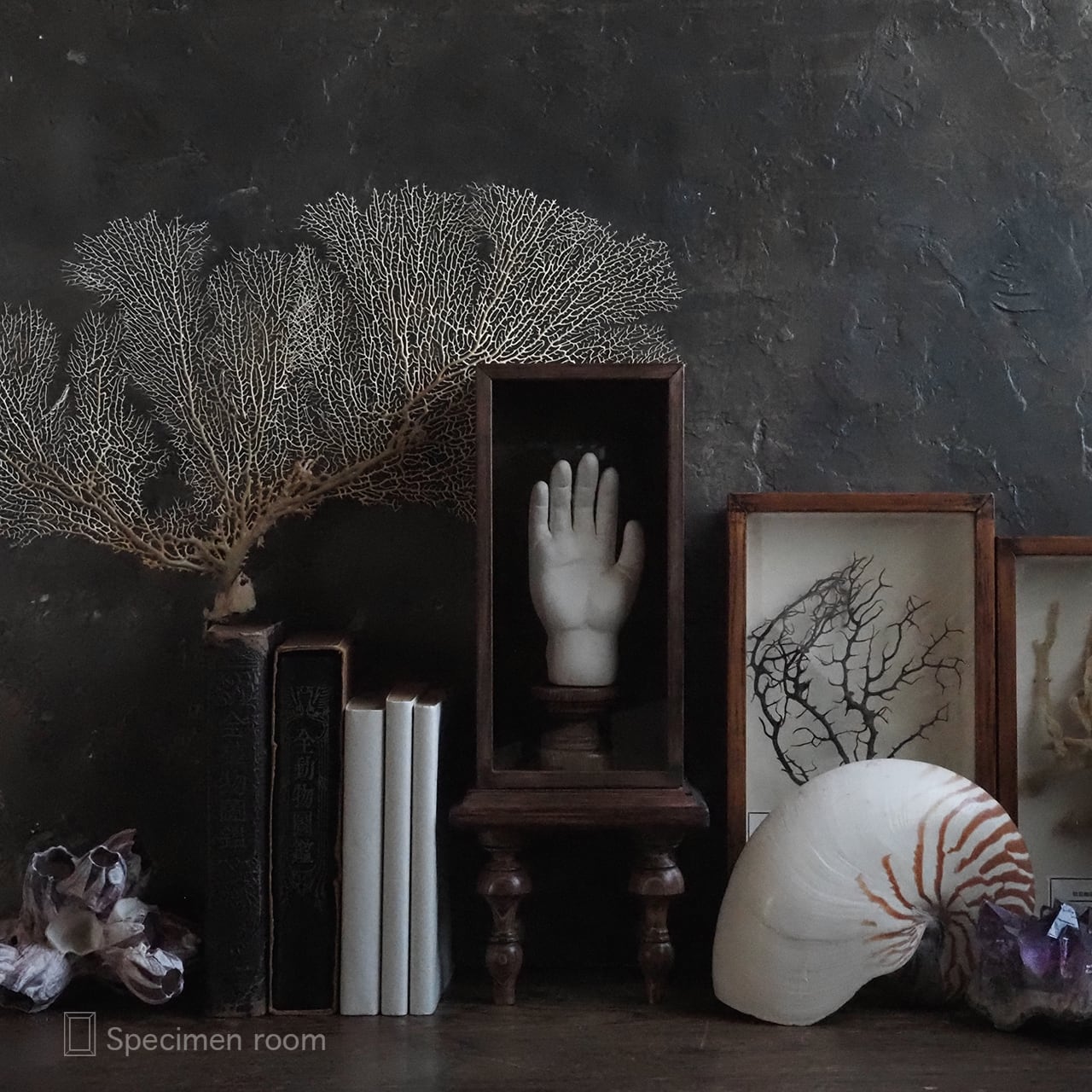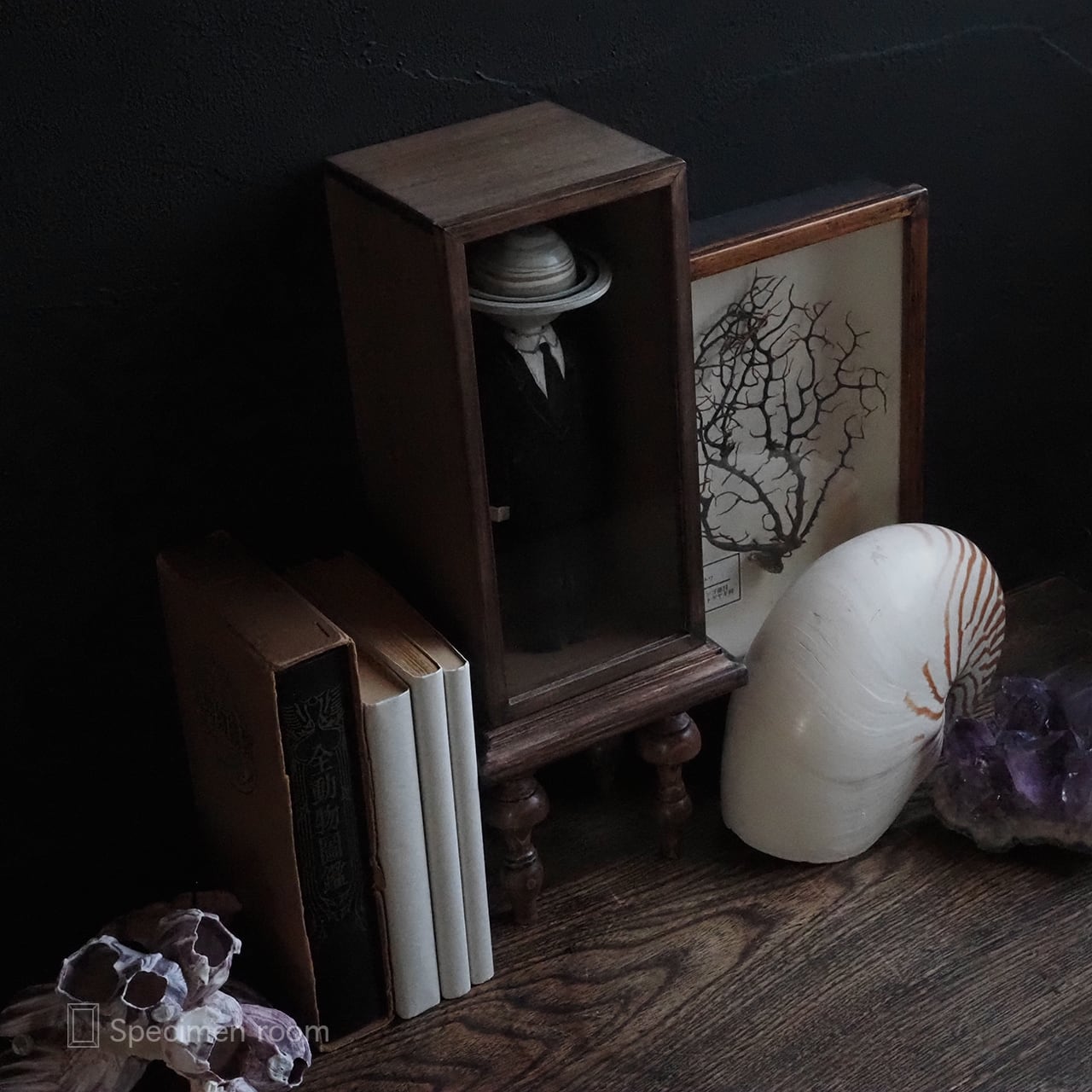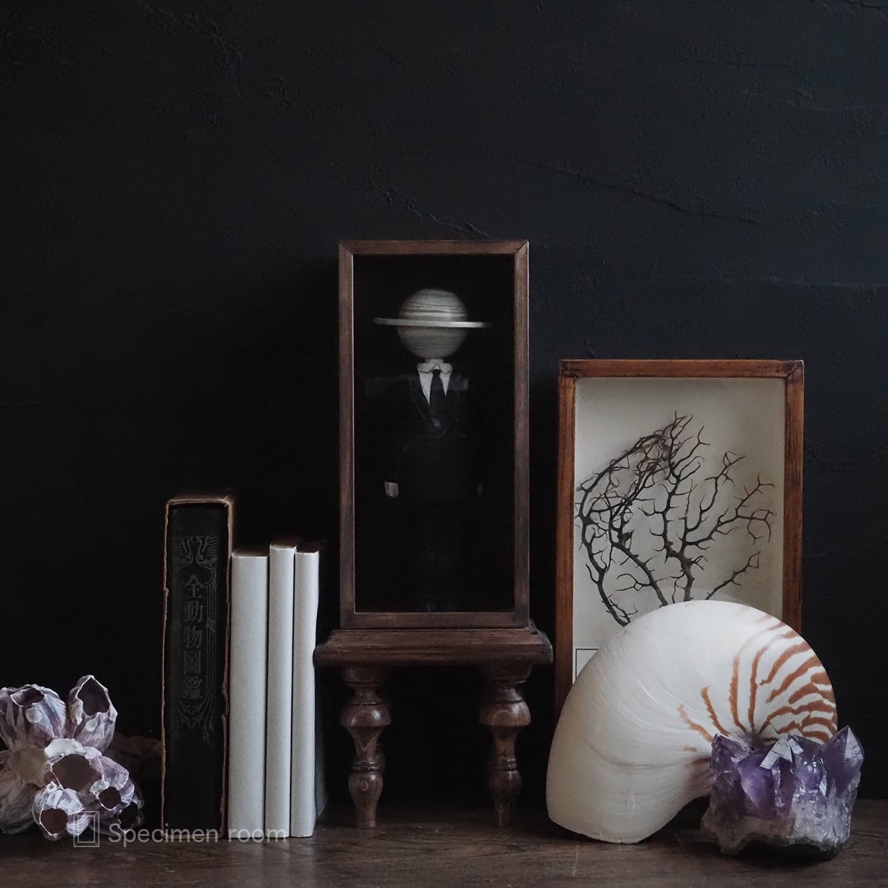 本、ウニ殻、オウムガイ等は撮影用の小物です