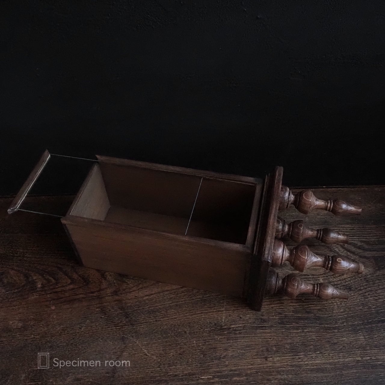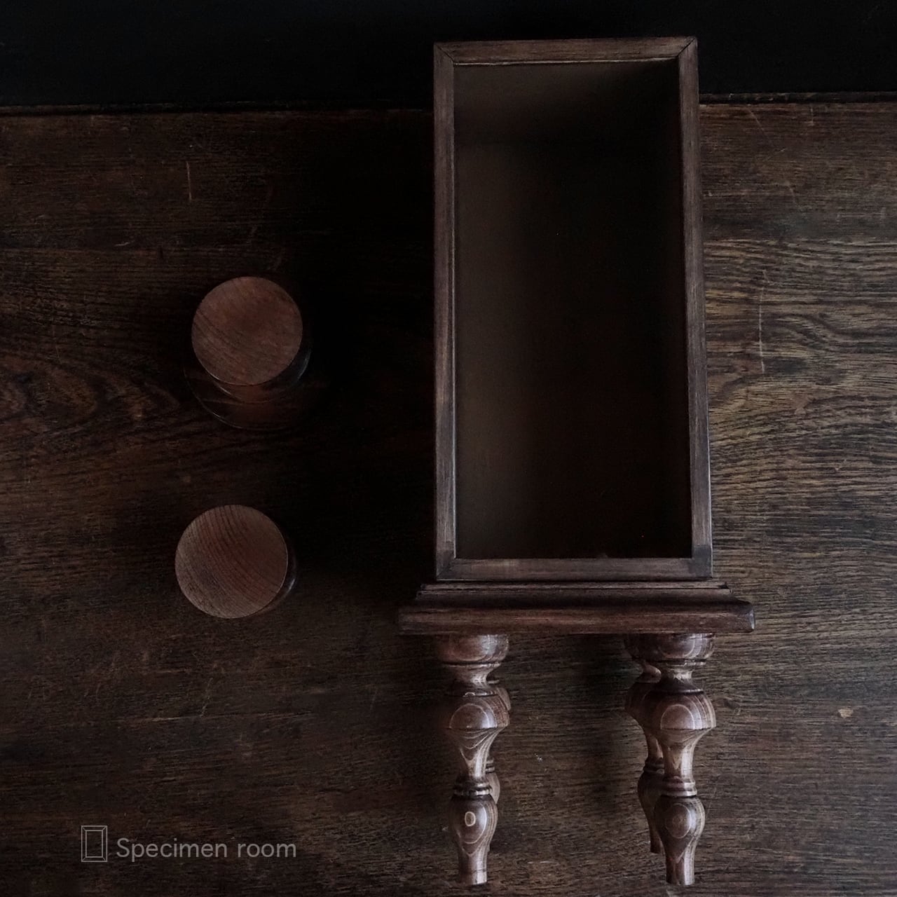 4本の脚付きの標本箱です。