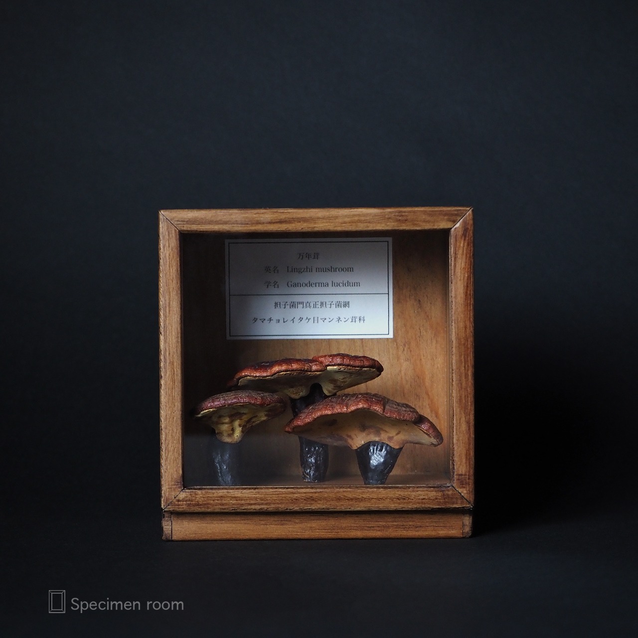 今回は「万年茸(まんねんたけ)」という本物のキノコを使用した標本です。