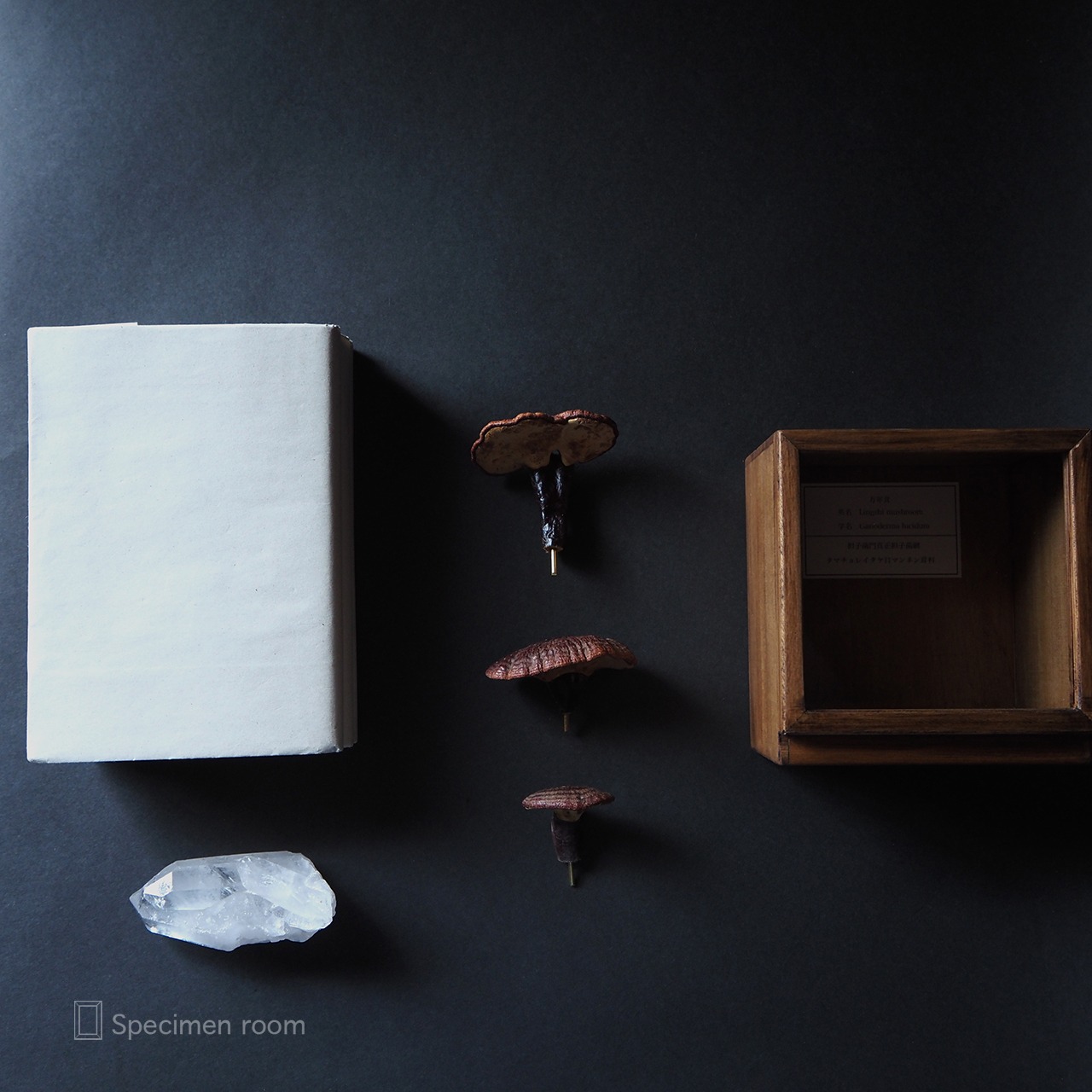 画像の鉱石や本、万年茸以外の標本等は撮影用の小物です