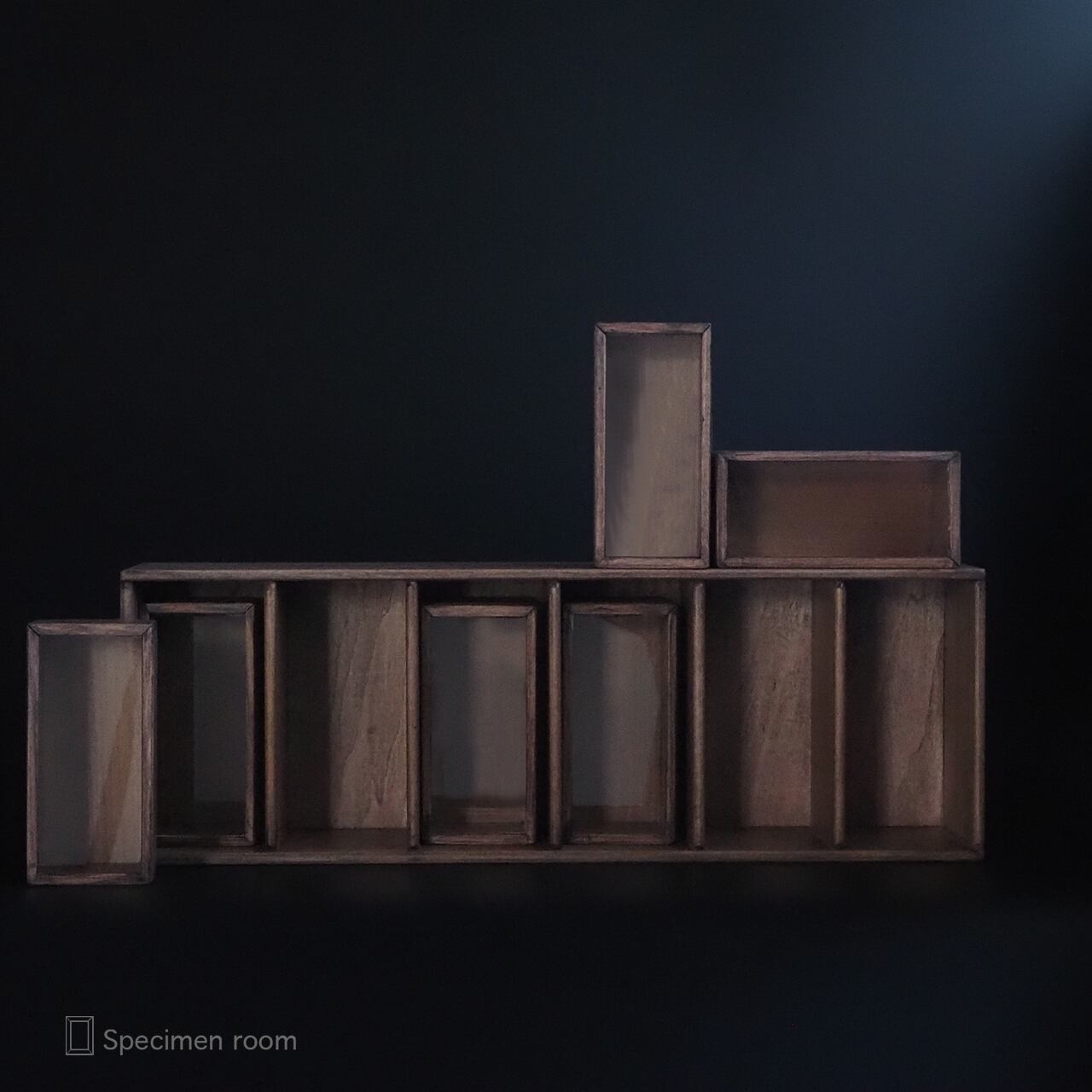 標本箱(コレクションケース)6個と専用の棚のセットです。