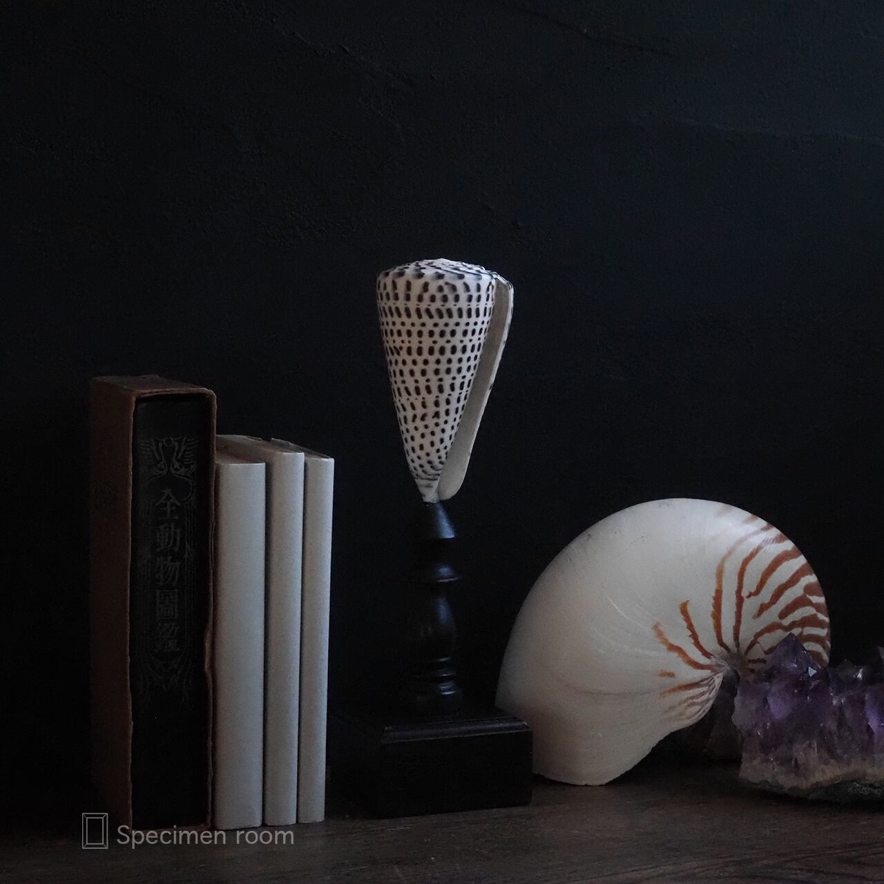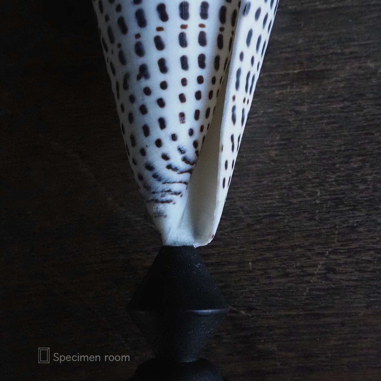 今回はイモガイの一種「クロフモドキ」の標本です。